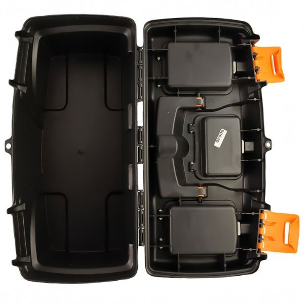 Velika, praktična kutija za odlaganje, ili nošenje alata do mesta gde Vam je potreban. Napravljena je od kvalitetne, izdržljive plastike. Ima poklopac sa zatvaračem i ručku za nošenje. Dimenzije kutije su 408x218x174 mm