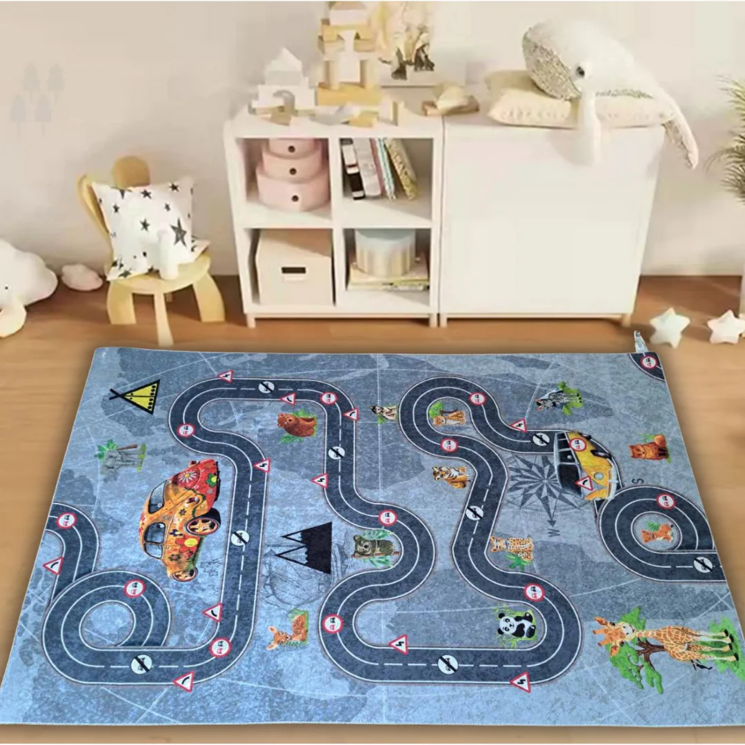 Oduševite svoje mališane sa dečijim tepihom Autoput dimenzija 120x180cm. Ovaj tepih nije samo dekorativni element, već i edukativna podloga koja će pružiti sate i sate zabave.