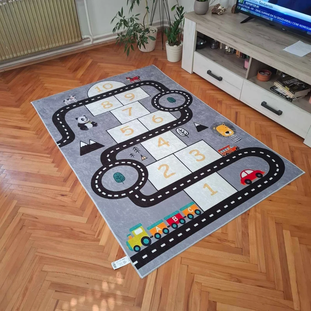 Jedan od ključnih benefita našeg tepiha je neklizajuća gumena podloga, koja značajno povećava sigurnost tokom igre. Više ne morate brinuti o mogućim padovima i povredama, jer ova posebno dizajnirana podloga osigurava da tepih ostane čvrsto na mestu, čak i tokom najuzbudljivijih trkačkih avantura. Mir i sigurnost vašeg deteta su za nas prioritet, a ovaj tepih je razvijen upravo s tim ciljem na umu.
