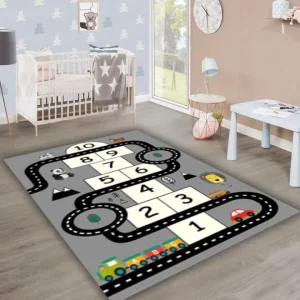 Atraktivni dizajn sa malenim auto trkama ne samo da oživljava prostor, već i podstiče kreativnost i maštovitost vašeg deteta. Vaši mališani će uživati u satima igre dok se zamišljeno utrkuju svojim autićima po živopisno oslikanom tepišu. Dečiji svet mašte dobija potpuno novu dimenziju sa ovim tepihom, pružajući im sjajno okruženje za razvoj kognitivnih i motornih veština.