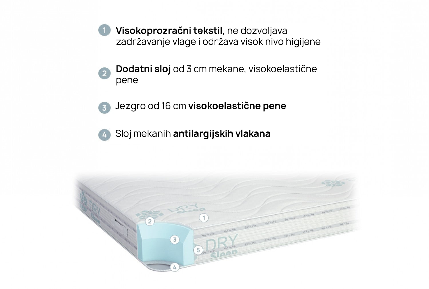 Jezgro DuoSense-a izradjeno je od 16 cm pene sa dugotrajnom elastičnošću.