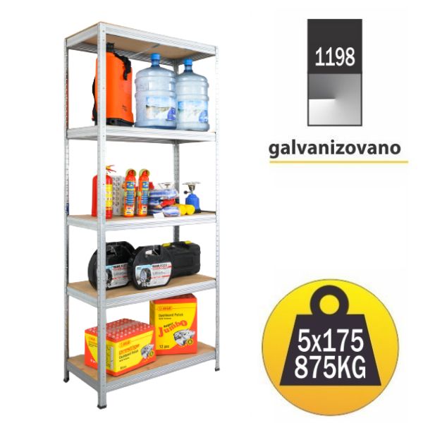 Polica ima 5 nivoa, a svaki nosi 175kg. Ukupna nosivost je 875kg. Metalni deo police čine stubici u L profilu 30x30mm sa duzinskom perforacijom. Perforacija omogucava proizvoljno podesavanje raspona izmedju nivoa police.